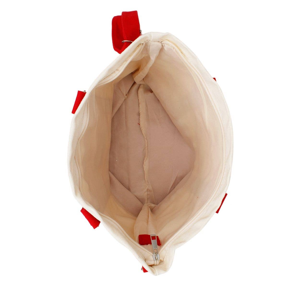 Delta Sigma Theta Sorority Paraphernalia Women's Canvas Tote Bag. Thick Cream with Red Trim Canvas Tote Bag Featuring DST Embroidered Shield and Greek Letters on Front. Back Features Screen Print "Delta Sigma Theta 13". Reinforced Straps. Main Zipper Closure. Front Slide Pocket. Fabric Lined Interior. Tote Bag Features Both Hand Straps and Detachable Adjustable Long Shoulder or Crossbody Strap.